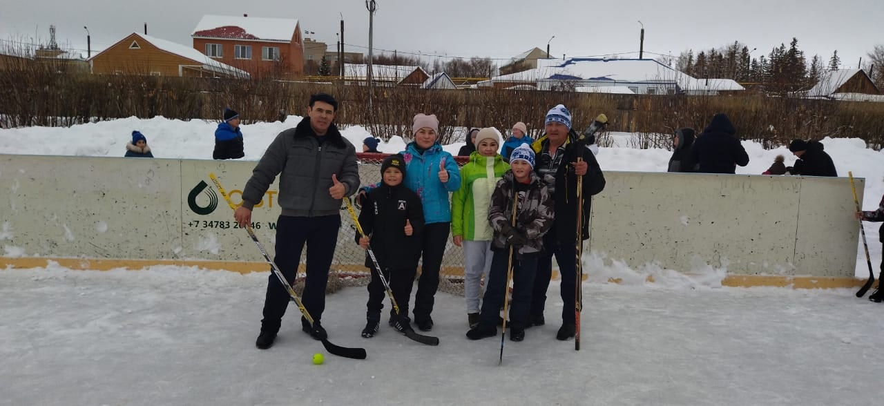 Нашу школу представляла семья Махмутовых, за что им очень благодарны. Соревнования проводились в виде эстафеты и игры в хоккей.
