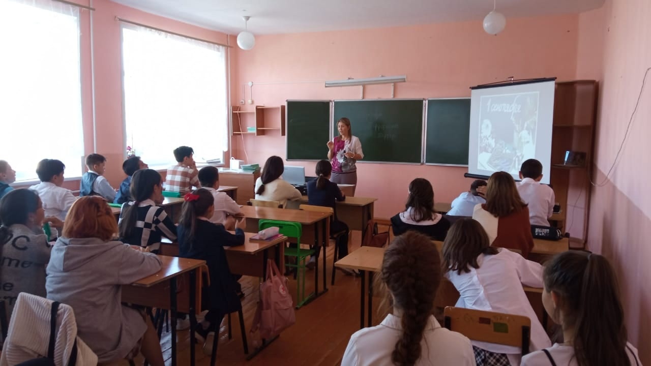 7 сентября 2022 года, в школе социальным педагогом Акбалиной А.З. был проведен классный час, посвященный 18-й годовщине трагических событий в г. Беслане на тему «Терроризм: эхо Беслана».